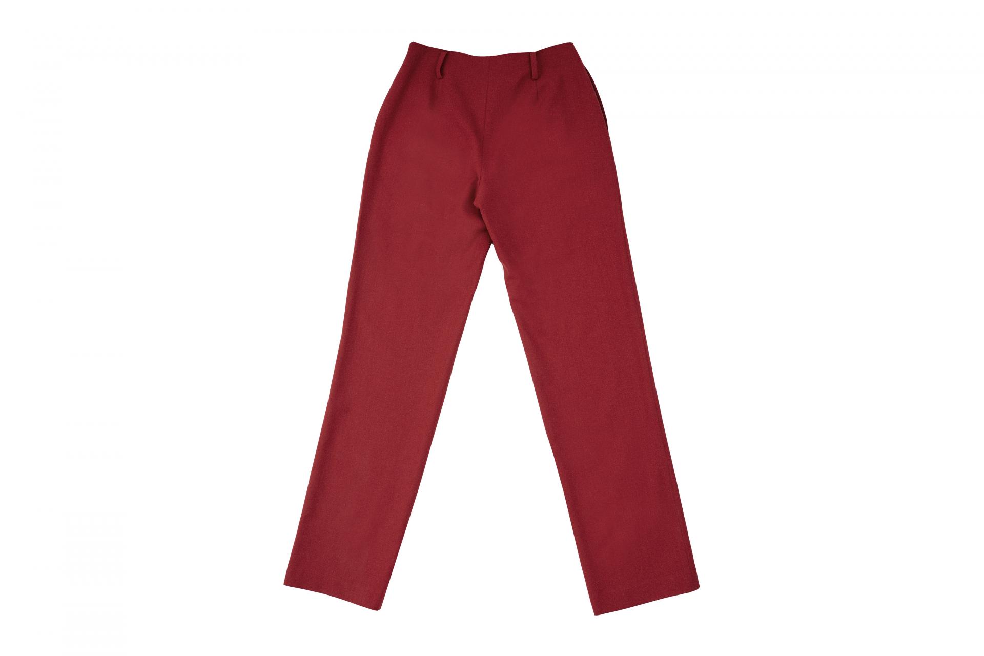 Straight leg pants with flat front in wood/rosebrick fluid wool with 2 side pockets styling.