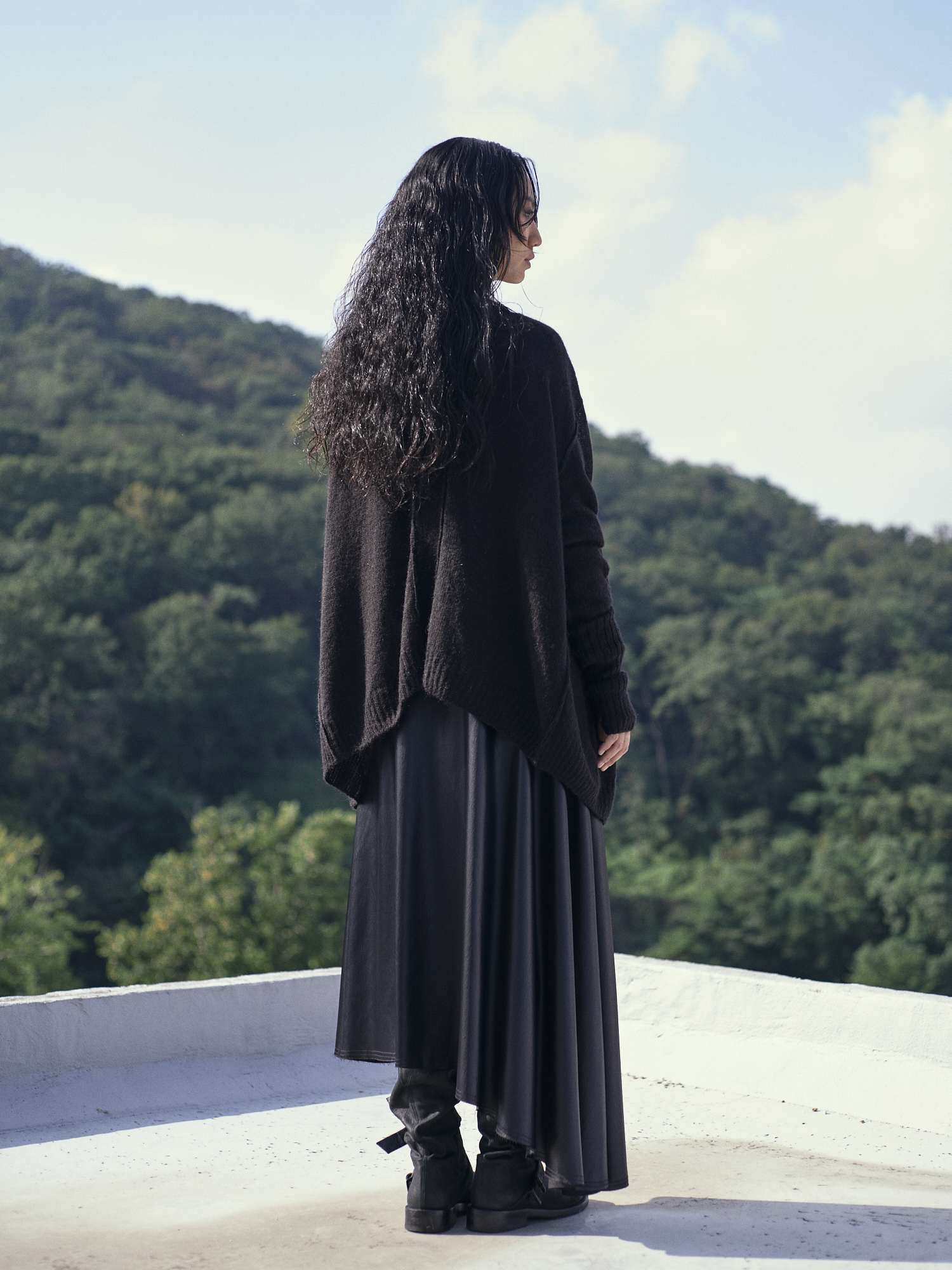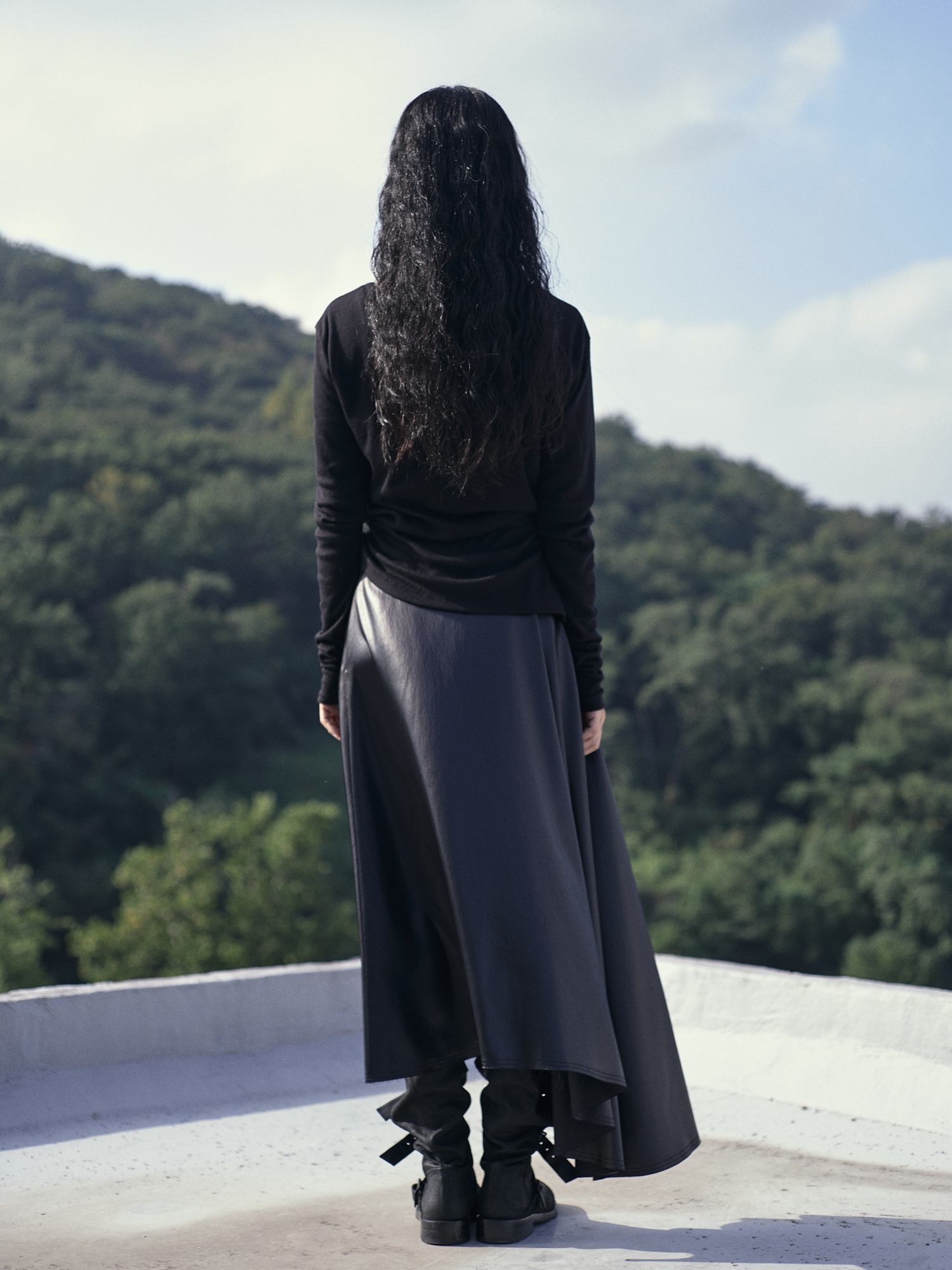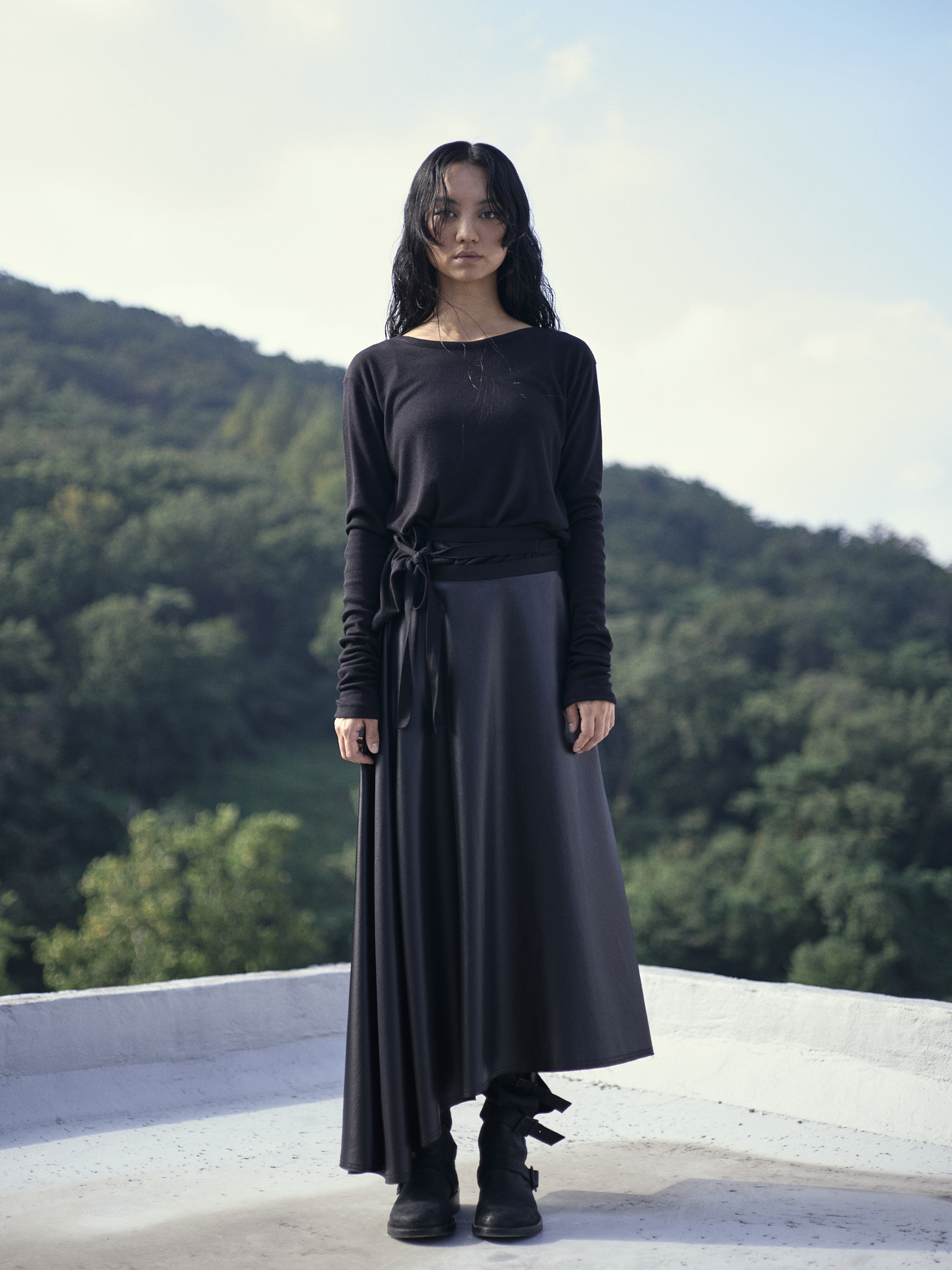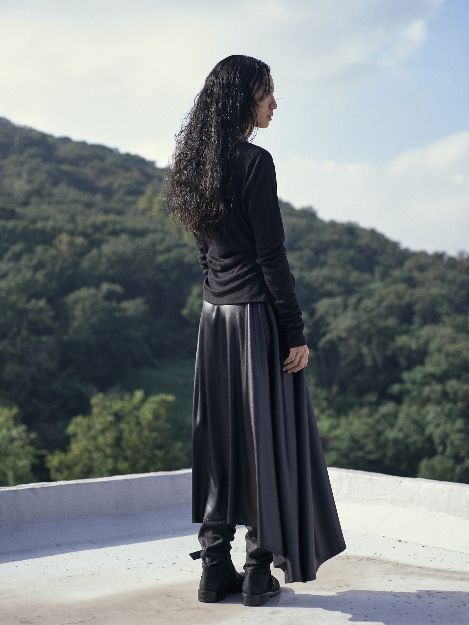 *unbalanced long-sleeve tee (블랙) 과 함께 착용.