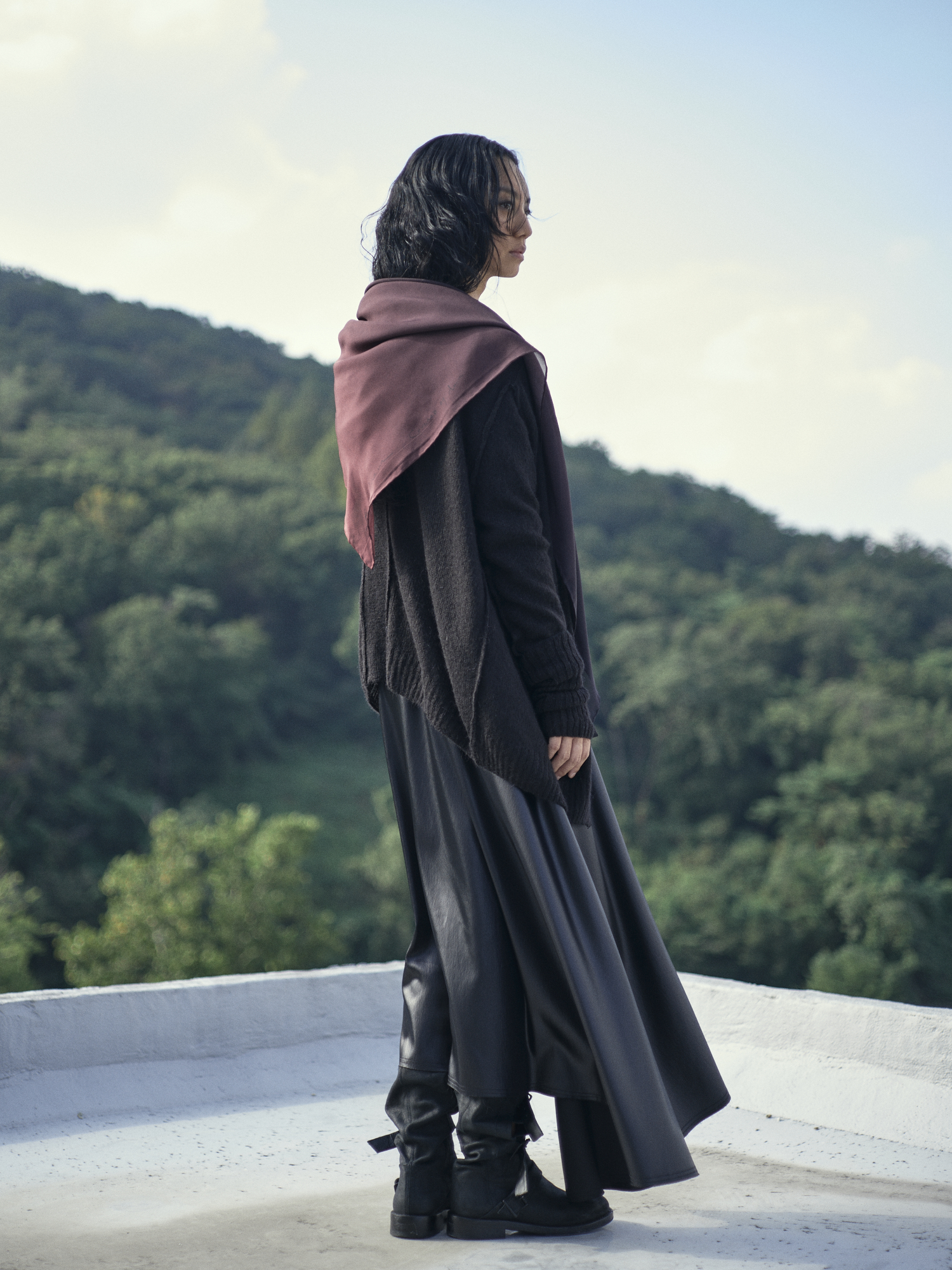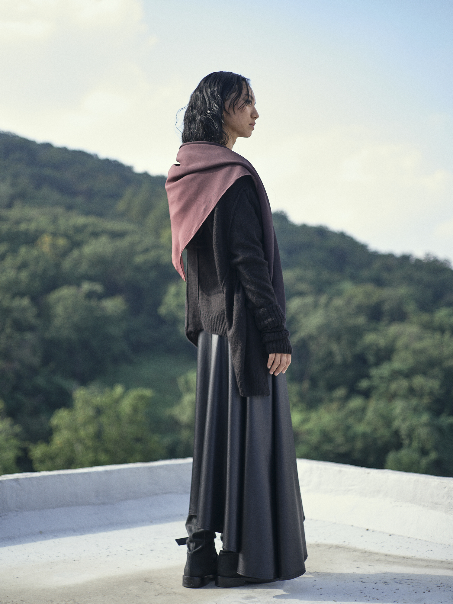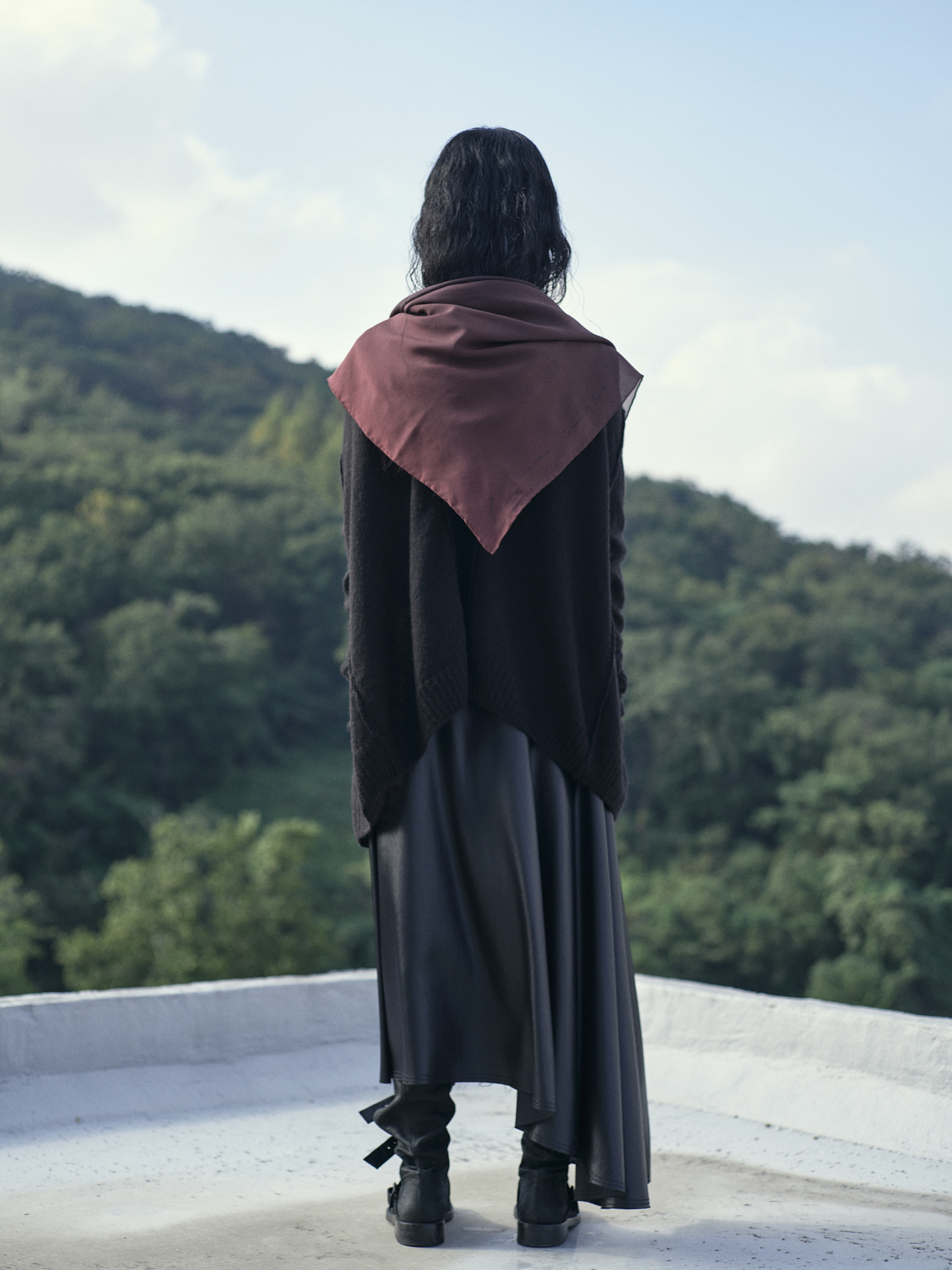22 fw editon.01 컨셉의 레터링과 그라데이션이 적용된 오버사이즈 정사각 실크 스카프 입니다.
