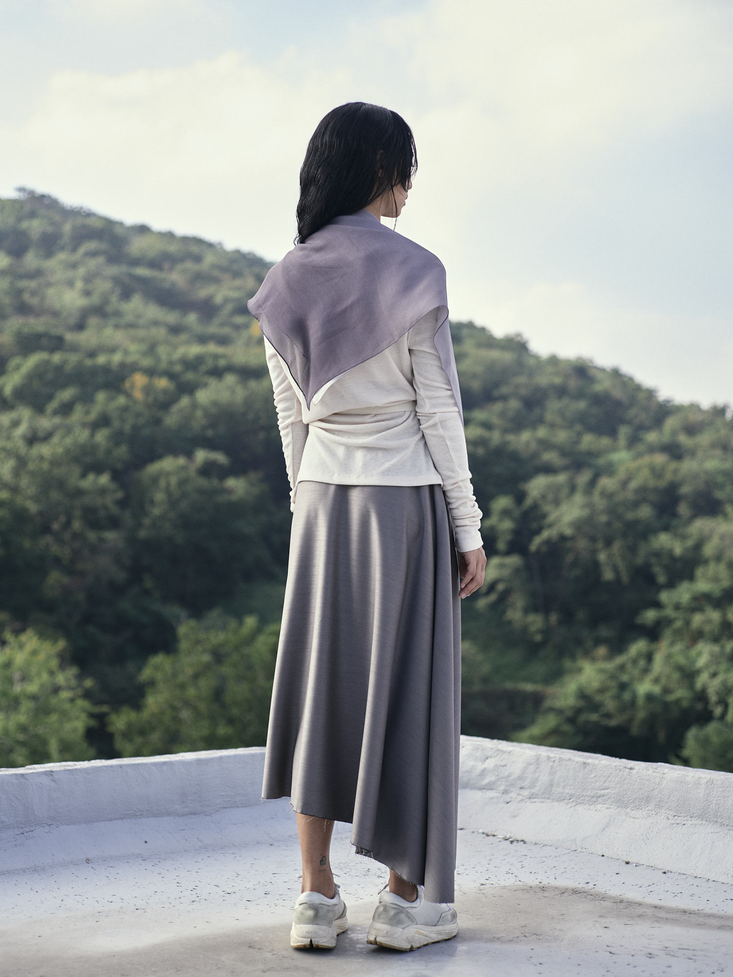 Oversized square shaped silk scarf with gradient throughout in tones of
