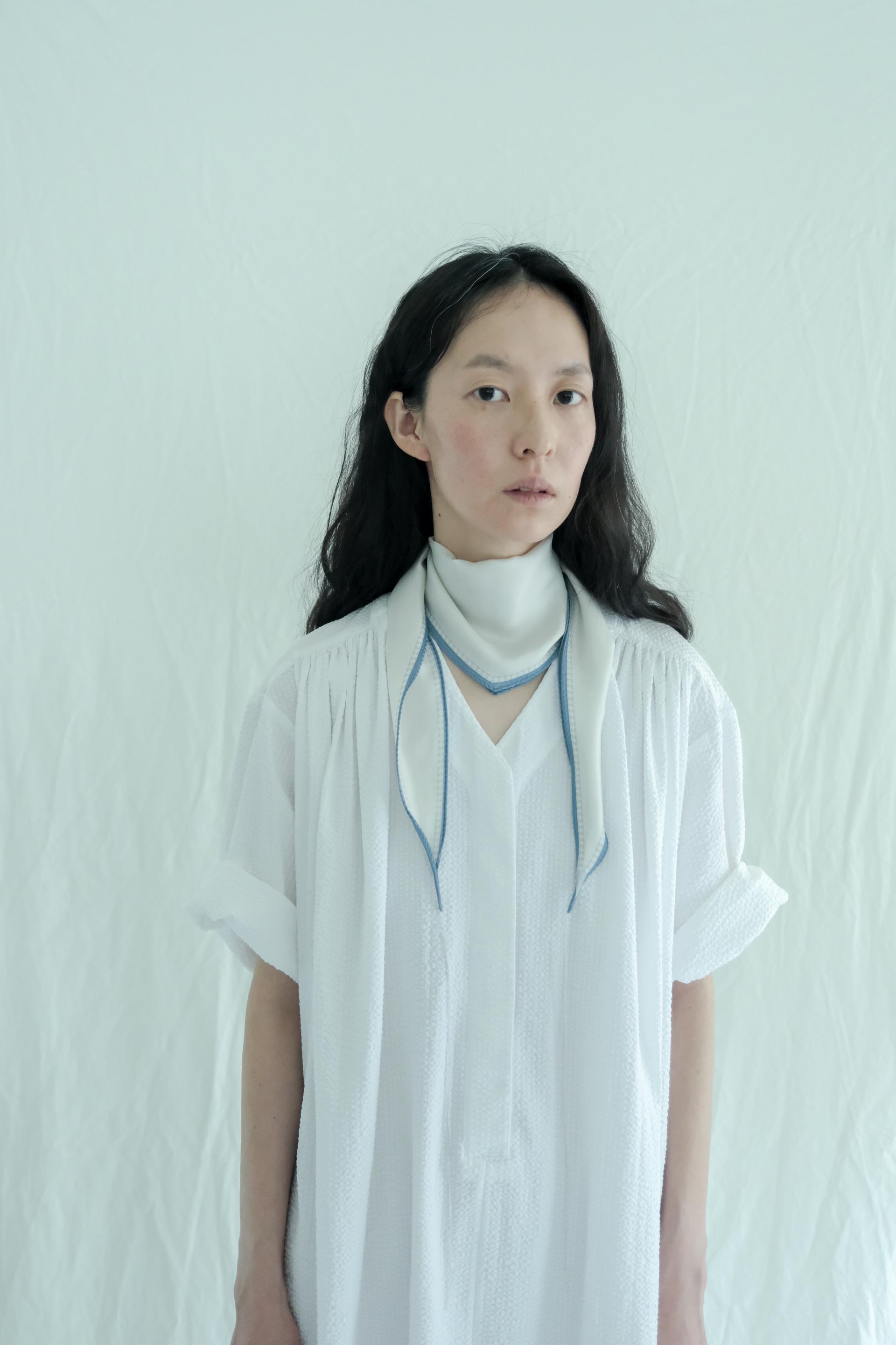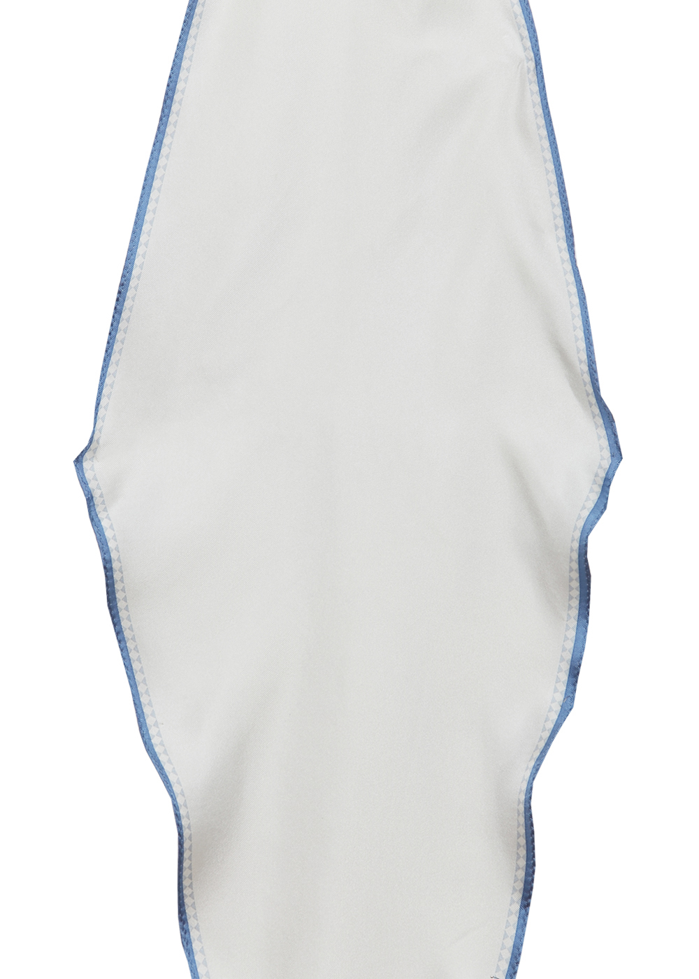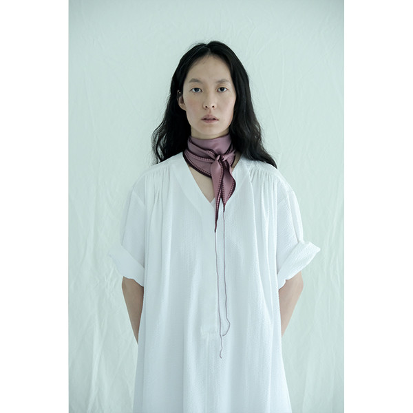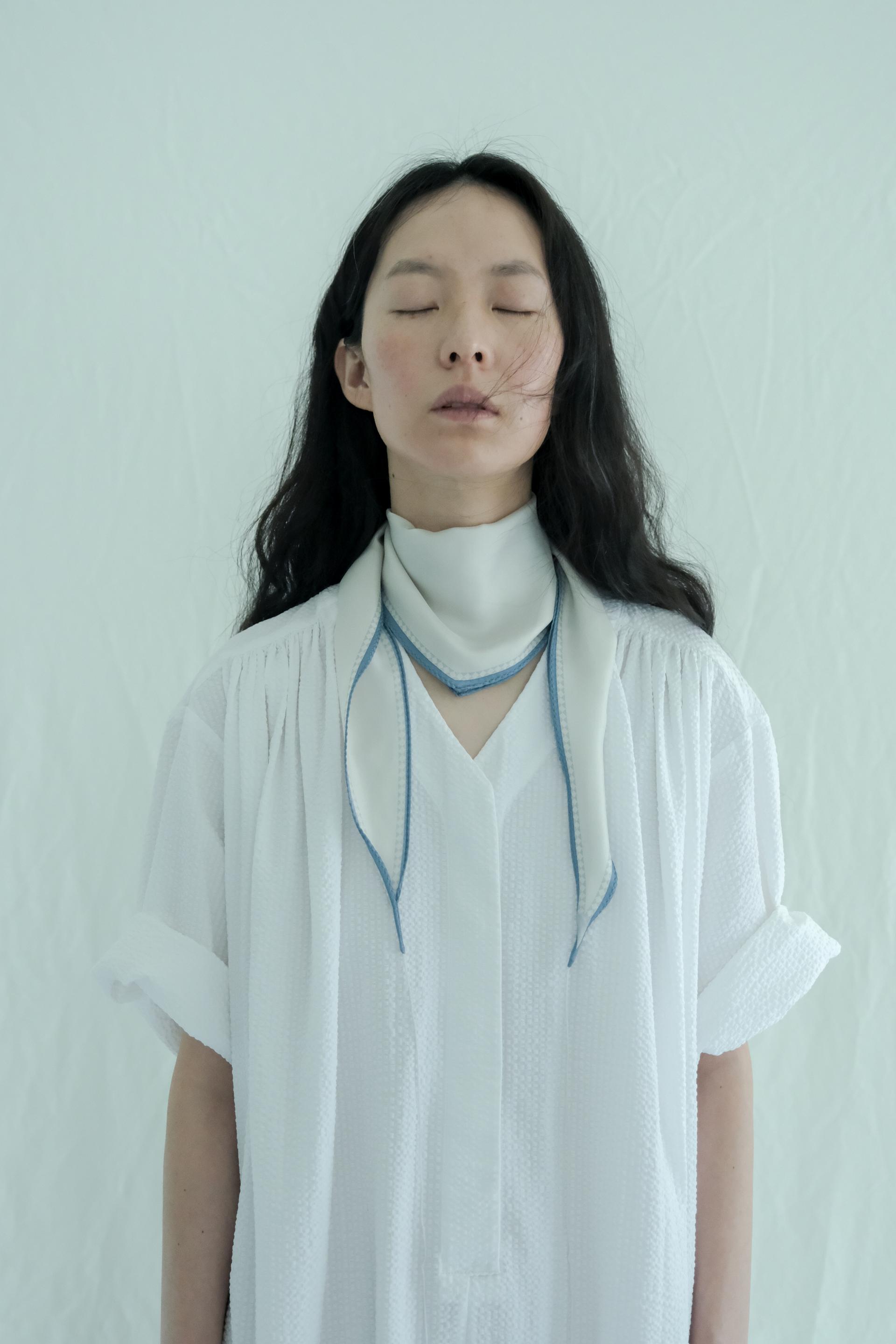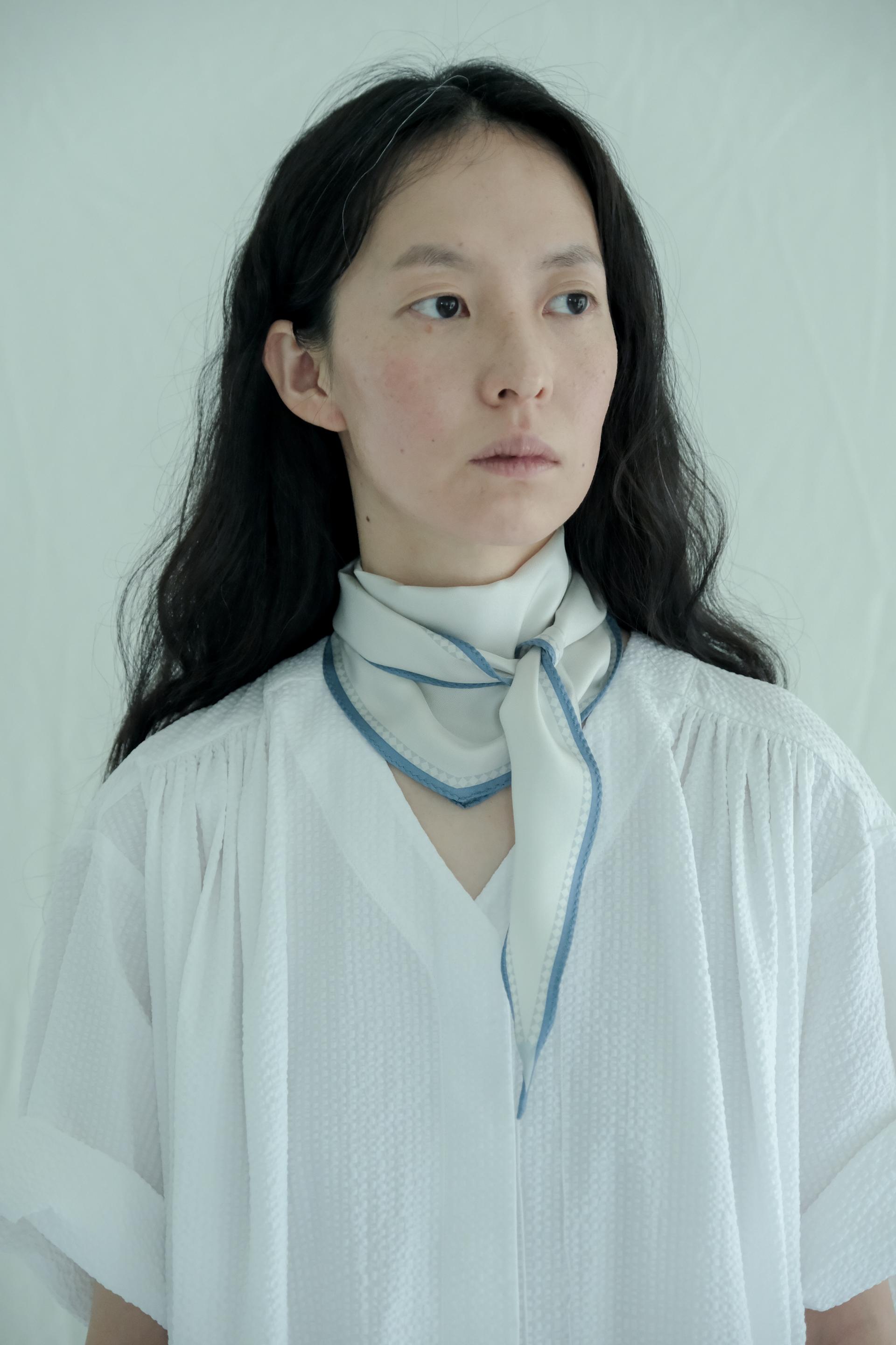OUR SIGNITURE TIE SCARF IN SILK. ITS LIGHTWEIGHT SILK GIVEN VERY SMOOTH AND DELICATE TOUCH. FEATURES A SIMPLE AND CASUAL PRINT IN A MIXTURE OF DIVERSE TONES.