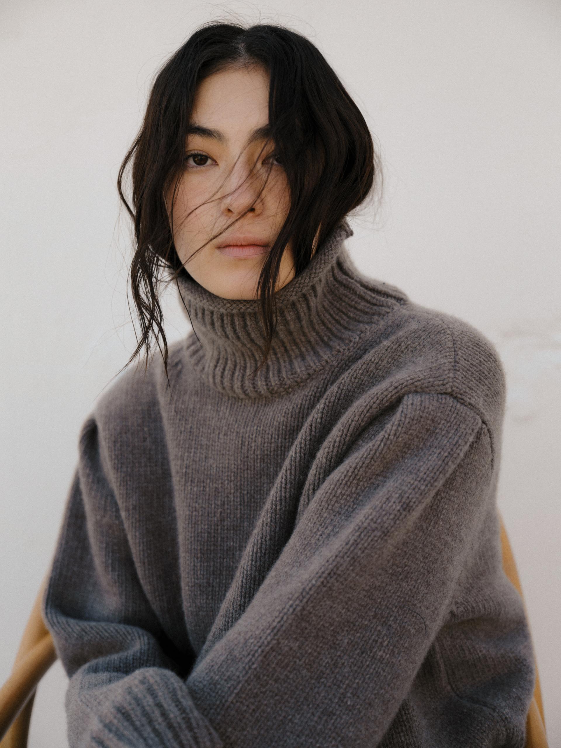TURTLENECK SWEATER KNIT IN SUPERFINE MERINO WOOL AND PURE YAK.